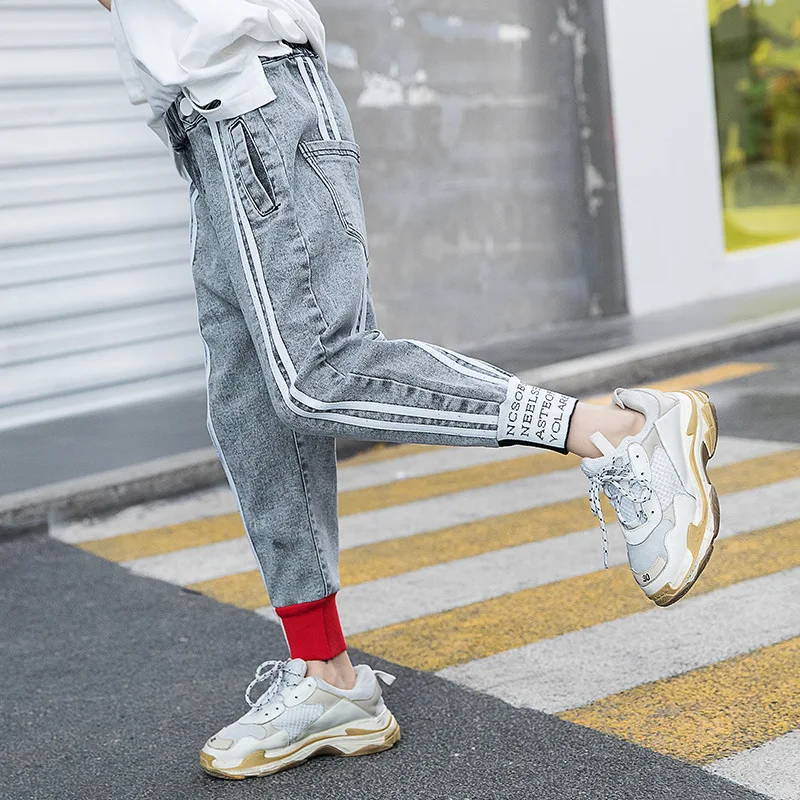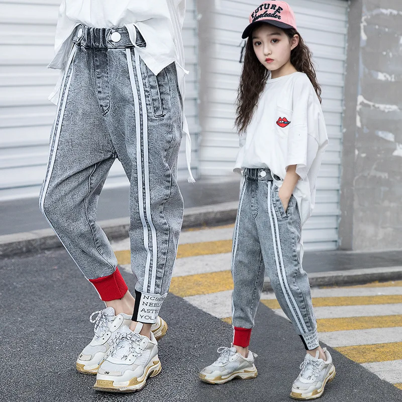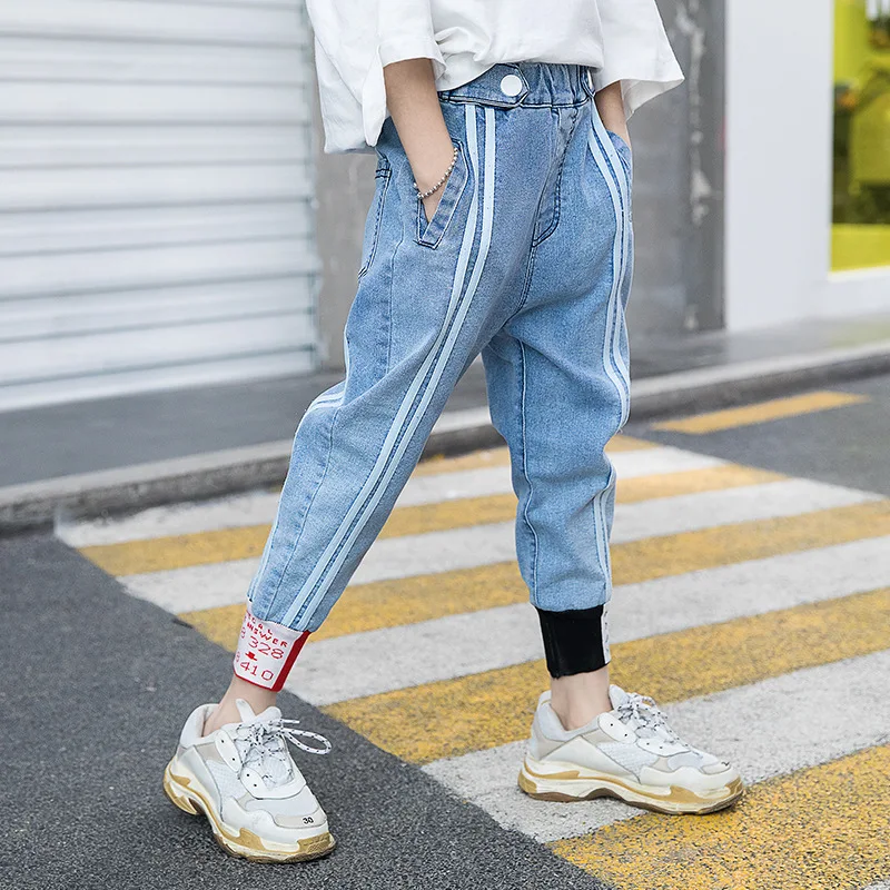 Autumn New Kids Clothes Denim Harem Pants For Baby Girls Stylish White Ribbon Jeans For Girl Ankle-length Jean Toddler Teen pant